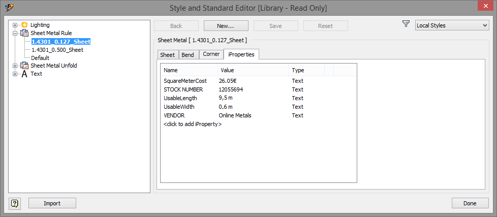 Sheet metal styles inventor 2013.